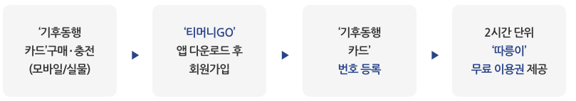 ・'티머니GO' 앱을 통해 기후동행카드번호 등록 시 기후동행카드 사용기한 내 따릉이 2시간 이용권 제공