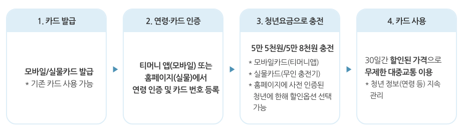 - 본사업(7.1.(월))부터 별도의 청년 요금(5만 5천원, 5만 8천원)으로 충전 가능
